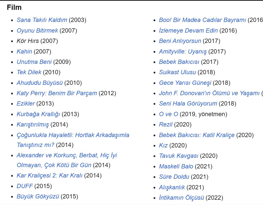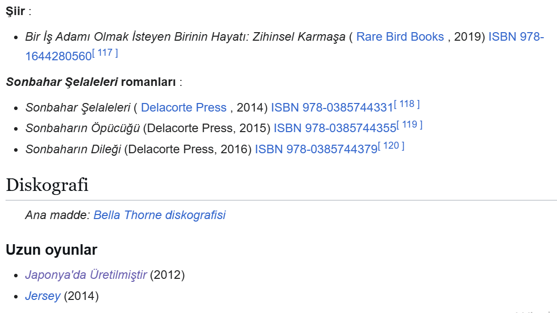Bazı bilgilerin, ekran görüntüsünü aldık. Yazıyı (https://en.wikipedia.org/wiki/Bella_Thorne#Writing) adresinden, yardım alarak yazdık.
