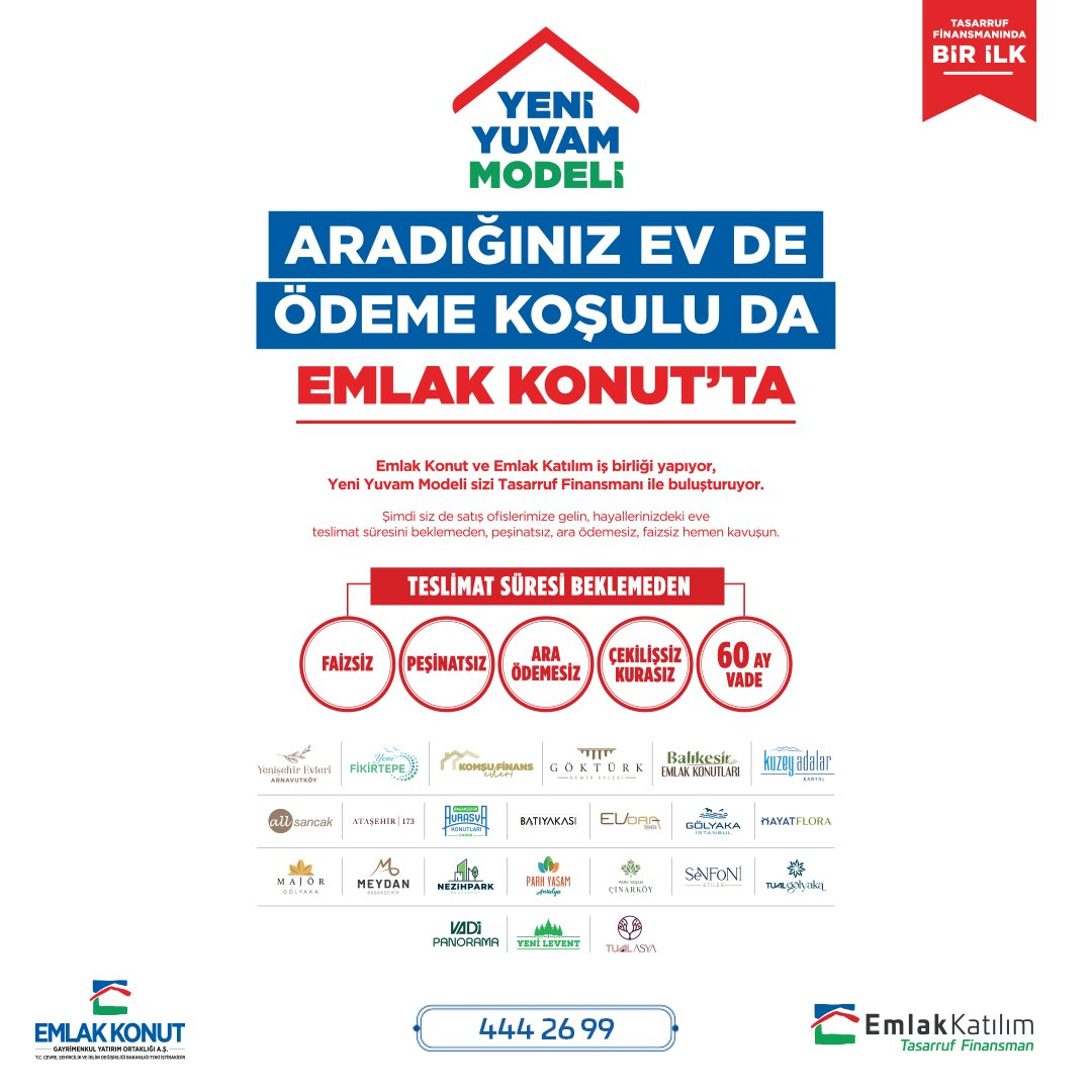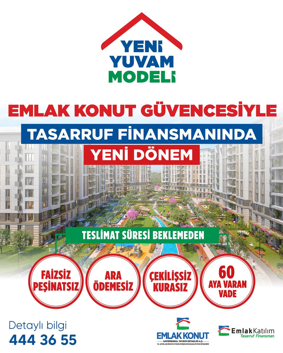 Emlak Konut Yeni Yuvam modeli, Emlak Konut GYO ve Emlak Katılım Bankası işbirliğiyle hayata geçirilen bir tasarruf finansman sistemidir. Bu model, Türkiye’de kamu güvencesi altında ilk kez uygulanan bir yöntem olarak, ev almak isteyenlere faizsiz, peşinatsız ve ara ödemesiz seçenekler sunar. Yeni Yuvam modeli Emlak Konut projelerinde, çekiliş veya kura beklemeden doğrudan ev seçme imkanı verir. Model, konut bedelinin yarısını Emlak Konut’a faizsiz taksitlendirerek, diğer yarısını tasarruf finansmanı şirketine yönlendirir. Bu sayede, teslimat süresi olmadan ev sahibi olmak mümkün hale gelir. Emlak Konut GYO Yeni Yuvam modeli, özellikle orta gelir grubuna hitap eder ve 2025’te İstanbul, İzmir, Antalya ile Balıkesir’deki 23 prestijli projede geçerlidir.