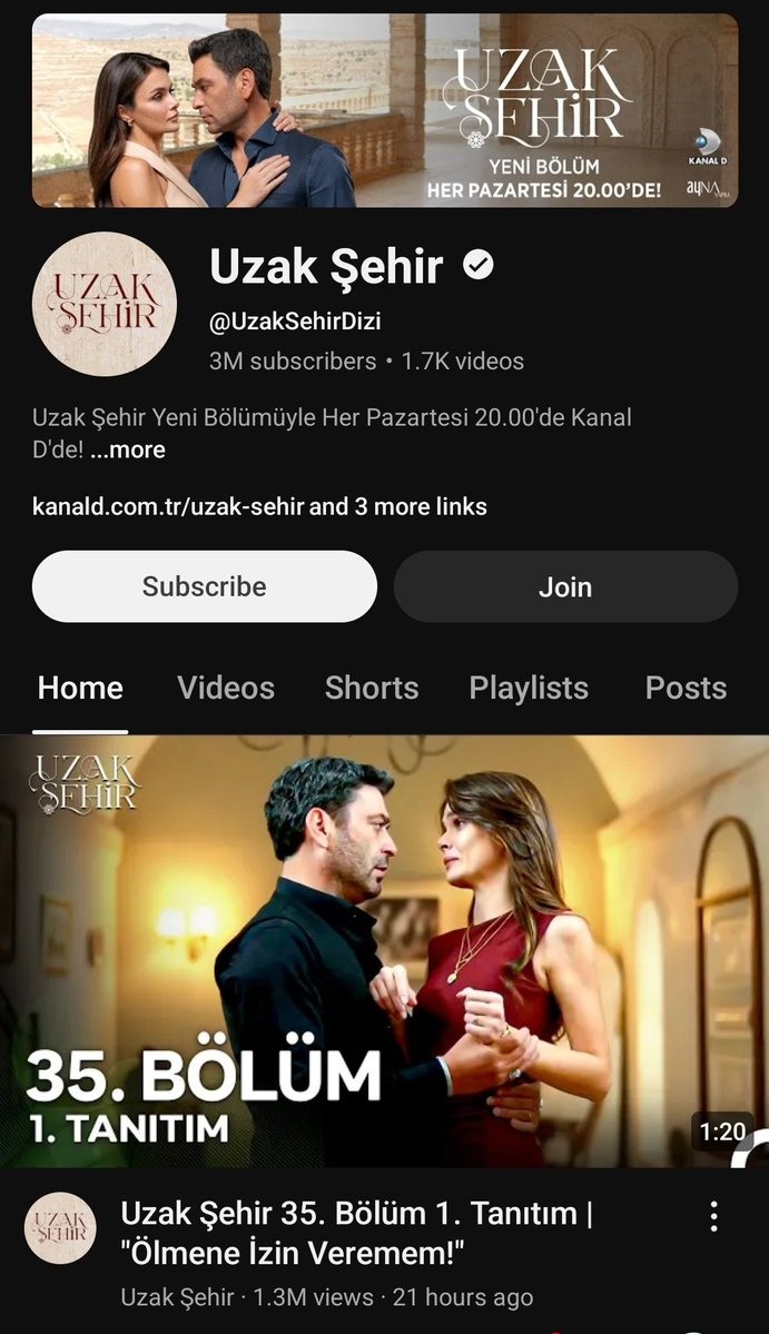 Uzak Şehir, Kanal D ekranlarında her Pazartesi akşamı izleyicileriyle buluşurken dijital platformlarda da fırtına gibi esiyor. Resmi YouTube kanalı, Alya ve Cihan’ın hikayesini anlatan fragmanlar ve tam bölümlerle 3 milyon aboneye ulaşmayı başardı. Bu başarı, dizinin Mardin’de çekilen sahneleri ve duygusal derinliğiyle hayran kitlesini genişletmesinin bir sonucu. Sosyal medyada binlerce paylaşım alan kanal, Türkiye’nin en çok izlenen yapımlarından biri haline geldi.